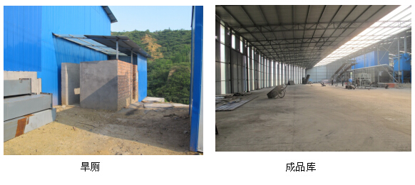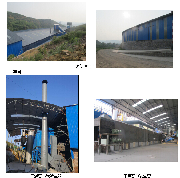 本项目呈不规则形状,生产车间封闭,顶棚采用轻钢结构,东、西面用实体墙和轻钢结构,北面为山体,北面和南面用实体围墙、防风抑尘板、轻钢结构,生产车间内设有原煤堆场、筛分-破碎装置、搅拌机、烘干窑、以及成品库,煤气发生炉设置在生产车间北面。厂区东南面设有磅房、办公房和库房。详见附图2项目平面布置图。