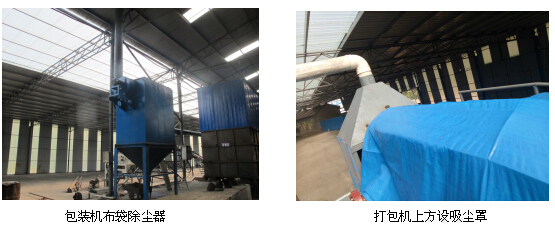 冷却后的型煤经自动包装机打包后,输送至成品车间储存待售。包装过程中会产生一定量的粉尘,在包装机上方设集尘罩和吸尘管,收集后经布袋除尘器处理后排放。