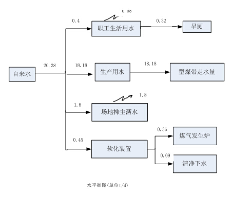 本项目原煤筛分机筛上物(>1cm)作煤气发生炉原料,通过皮带进入煤斗坑内煤仓,再由吊钩将煤仓提升至煤气发生炉炉顶待用。