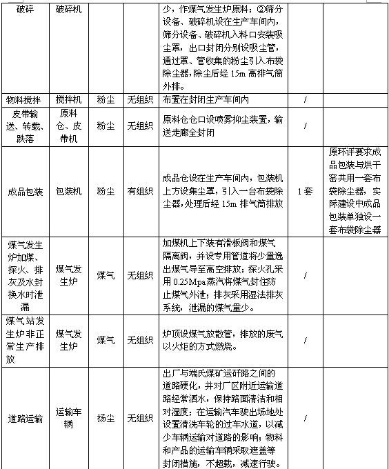 本项目使用原料末煤均外购自周边煤矿,由货车运输至全封闭原煤堆场内,由铲车将原煤送入给料机,通过皮带输送至筛分机,粒径≥1cm的原煤堆至块煤堆场,供煤气发生炉使用,粒径≤1cm的原煤进入锤式破碎机破碎。