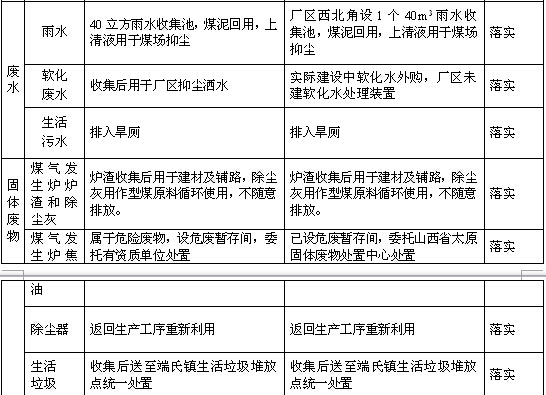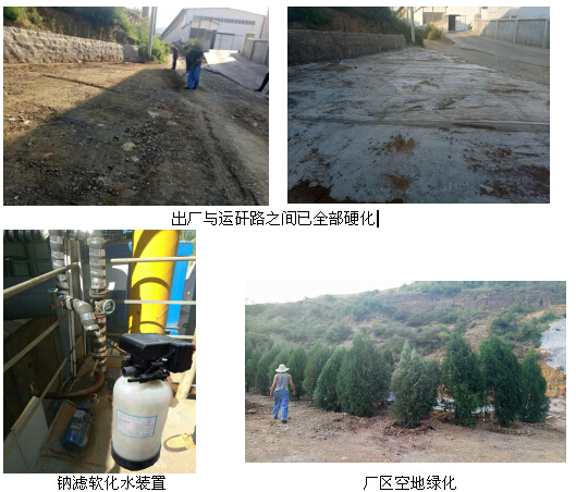 (1)要求尽快完成软化水处理装置的建设。对出厂与端氏煤矿运矸路之间的道路进行全部硬化。加强厂区绿化工作。