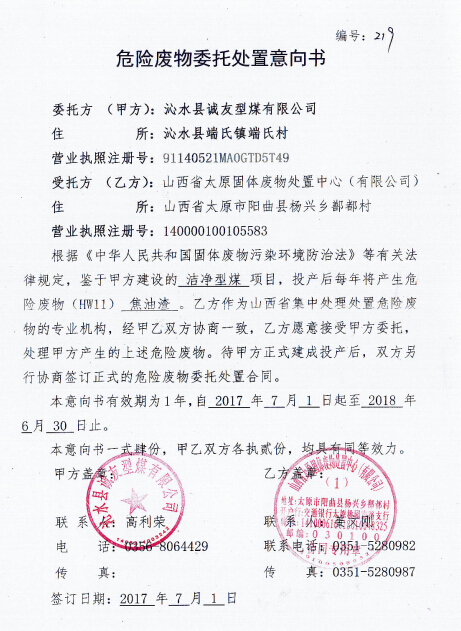 沁水县诚友型煤有限公司年产10万吨型煤项目